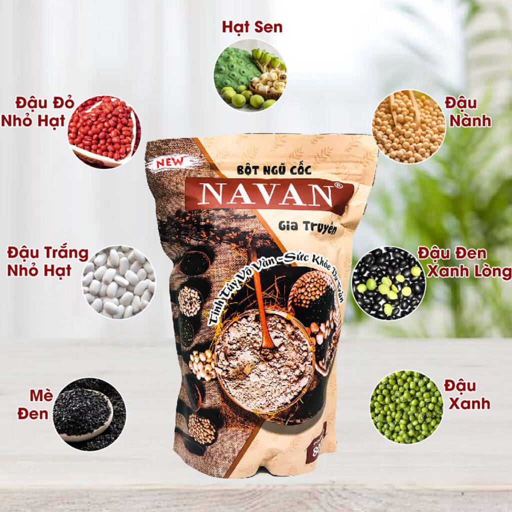 Ngũ cốc Navan được chế biến từ công thức gia truyền gồm 9 loại hạt khác nhau cho giá trị dinh dưỡng cao cũng như có nhiều tác dụng rất tốt cho sức khoẻ, trong đó bao gồm